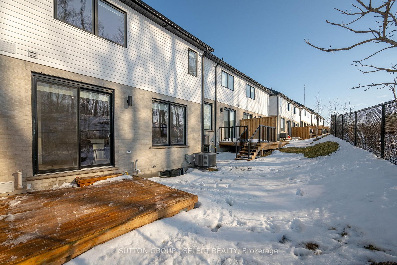 Built by award-winning Lux Homes Design & Build Inc., this newly built modern freehold vacant land condominium townhome is located in the Riverbend Towns development in West London. This move-in-ready two-story home features an open concept main floor with oversized windows, nine-foot ceilings, and a contemporary kitchen with quartz countertops, modern cabinetry, and included appliances and window coverings. The principal living and dining areas are bright and functional. A private rear deck backs onto protected forest. The second level includes three bedrooms plus a den, including a primary bedroom with a walk-in closet and four-piece ensuite, along with an additional full bathroom and upper-level laundry. Finished with neutral modern selections, black plumbing fixtures, and thoughtful details throughout. This is the last new unit available of this floorplan and currently serves as the builder's model home. Conveniently located near highways, parks, trails, shopping, restaurants, golf courses, the YMCA, West 5, and local schools. Purchase price reflects the 13% HST rebate, subject to Buyer qualification and assignment to the Seller.